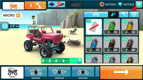 1、進入游戲后我們可以點擊右側升級來給車輛進行性能提升;