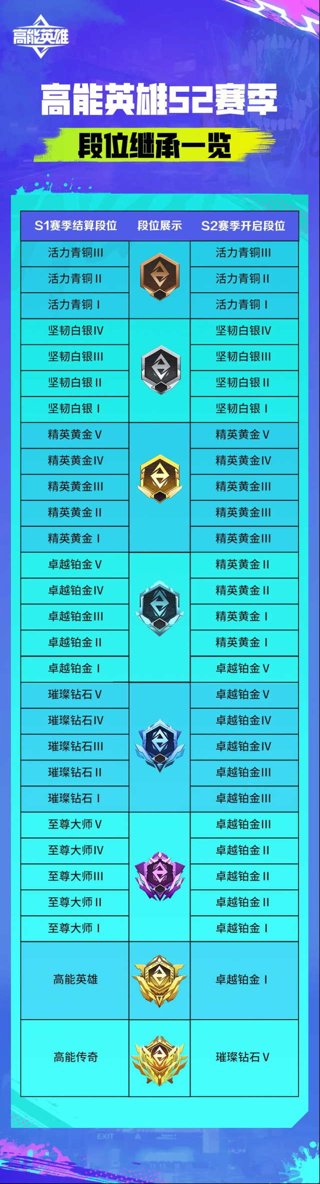 S1賽季結(jié)算段位為「精英黃金2」及以上的,S2賽季開啟后根據(jù)一定規(guī)則繼承。