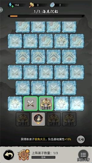 2、隊伍等級提升后,可以上陣更多弟子,并提升高品質(zhì)弟子出現(xiàn)概率,開局后建議先在商店購買兩次隊伍經(jīng)驗。后期精英怪物屬性強大,20關(guān)后的精英怪物,沒有絕對把握不要貿(mào)然挑戰(zhàn)。