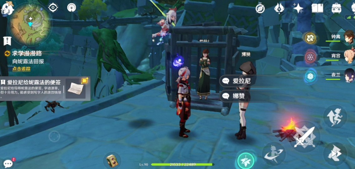 2、和妮露法對(duì)話(huà),接取任務(wù)[求學(xué)漫漫路]。