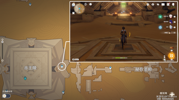 1、傳送赤王陵南邊,往右走進(jìn)渡厄廳,用四葉印飛到北邊。