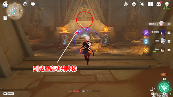 2、向西走棺槨大廳,啟動(dòng)電梯。