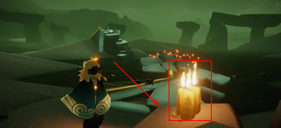 2、第二個(gè)季節(jié)蠟燭,我們要前往墓土歪倒的神廟的左側(cè)土堆附近。