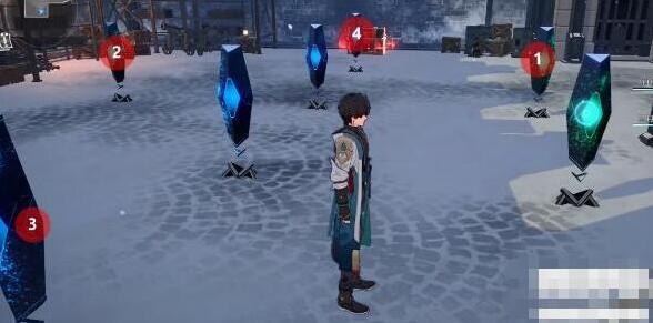 2、根據(jù)對應(yīng)的順序進(jìn)行攻擊5個(gè)冰屬性的尖碑。