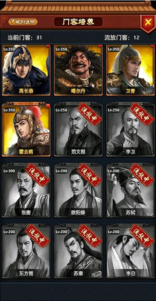 2、通過每個門客對應(yīng)紅顏,提升與紅顏的密切度,傳喚紅顏獲得教訓(xùn),升級紅顏技巧來提升門客屬性。