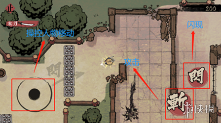 2、需要了解操作界面中的基本技能,玩家擁有三個(gè)基礎(chǔ)技能,除了最基本的移動(dòng)技能外,還可以向敵人揮刀攻擊,利用沖刺發(fā)動(dòng)進(jìn)攻。