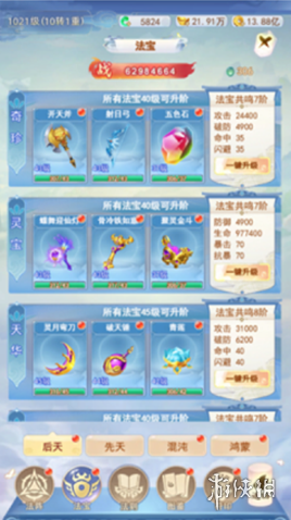 玩家可從主界面的尋寶功能進(jìn)入,巔峰尋寶將產(chǎn)出戒靈玄晶、鐲靈玄晶、大夏龍雀等珍貴道具。