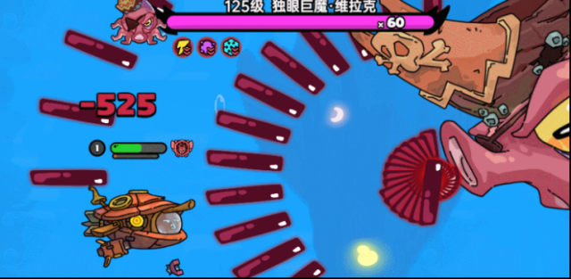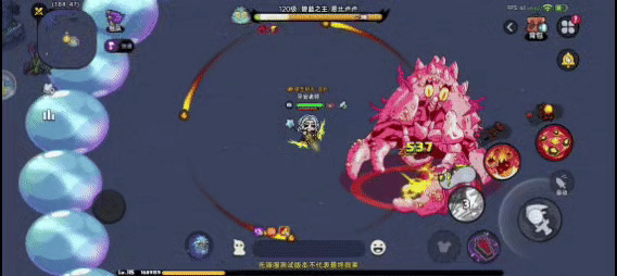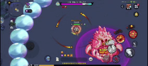 技能三:推泡泡時間到,boss血條在到達27左右時召喚兩個泡泡,在此期間boss處于無敵狀態(tài),玩家需將泡泡推到boss身上才能破除。