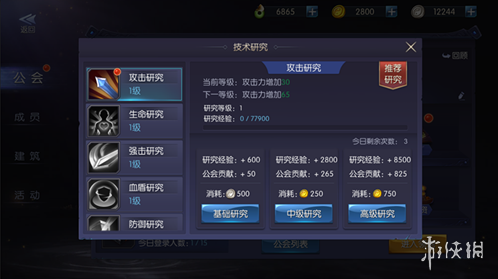 每次研究都將推動(dòng)公會(huì)科技的進(jìn)度向前發(fā)展,公會(huì)科技將為所有加入公會(huì)的玩家提供屬性加成。