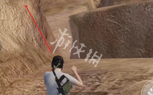3、來到圖中的位置,走到平臺盡頭,跳到對面的山上。