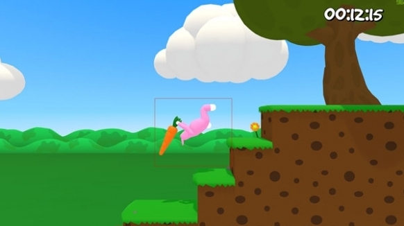 2、然后讓自己翻滾到目標位置,按抓取鍵即可,只要玩家抓的是蘿卜的根部或尾部,你就能把這個蘿卜抓起來,然后一直按住抓取鍵,隨意進行翻滾都沒有任何問題。