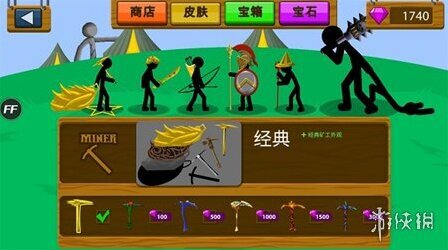 火柴人戰(zhàn)爭遺產(chǎn)是一款策略戰(zhàn)爭類型的游戲,采用了經(jīng)典的火柴人人物,主要就是兩邊建造士兵和挖礦工人,發(fā)動(dòng)進(jìn)攻以及獲取金幣(沒有金幣是沒辦法造士兵的)