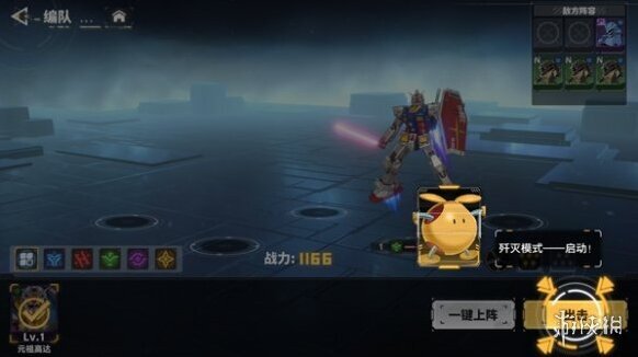 3、接著點(diǎn)擊出擊,選擇要上場(chǎng)的高達(dá)機(jī)體;