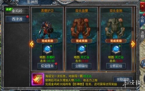 1、每提交一次任務(wù),可獲得一顆攻擊丸,使用后可永久增加人物攻擊力上限,完成對應(yīng)大陸所有影神圖任務(wù),還可獲得靈符獎勵.