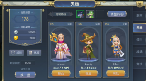 挑戰(zhàn)頁面主要分為五個板塊,第一個則為副本板塊,第二個板塊為天梯板塊,第三個板塊為領主板塊。
