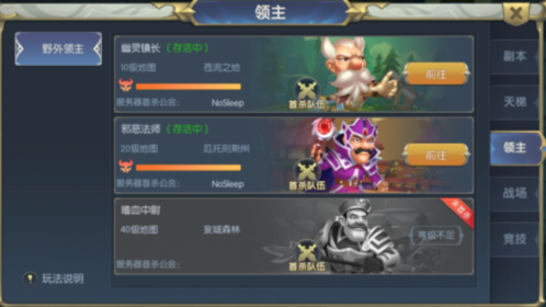 在第三個挑戰(zhàn)領主板塊中,領主將定時出現(xiàn)在世界的各個地圖上,每次擊殺首領,參與擊殺的玩家會獲得參與獎勵。