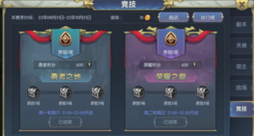 在第五個挑戰(zhàn)戰(zhàn)場板塊中,在定時的戰(zhàn)場中,有3V3的勇氣之環(huán)以及10V10的大型競技場,玩家可以自由選擇進入,2個戰(zhàn)場在不同的時間開啟,供玩家選擇進行PK。