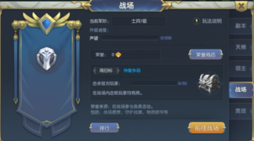第四個板塊為戰(zhàn)場板塊,第五個板塊為競技板塊。