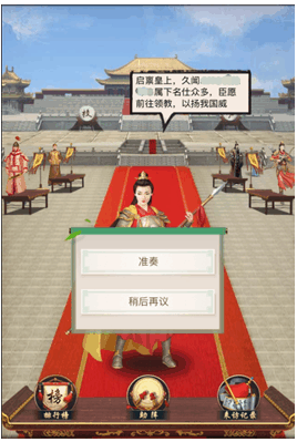 游戲前期可以先重點(diǎn)培養(yǎng)3至4個(gè)大臣為自己的主力進(jìn)行隨機(jī)出使或者挑戰(zhàn)。