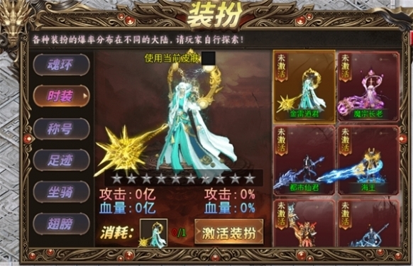 2、可以前往不同的大陸戰(zhàn)斗,可以進入五大陸、十大陸、十五大陸、終極大陸。