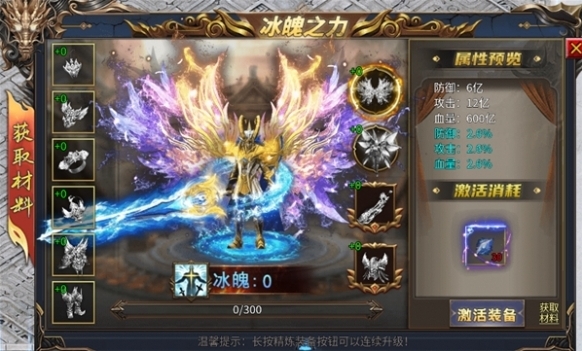 玩家穿戴各種冰魄裝備可積攢冰魄之力,提升防御、攻擊力。