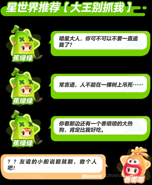 蕉綠綠和香嘟嘟時(shí)裝很適合和星搭子一起穿一起穿新衣,一起玩游戲~星妹聽(tīng)說(shuō)新時(shí)裝和以下玩法更搭?場(chǎng)景一