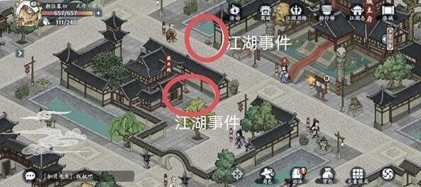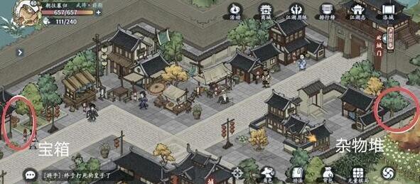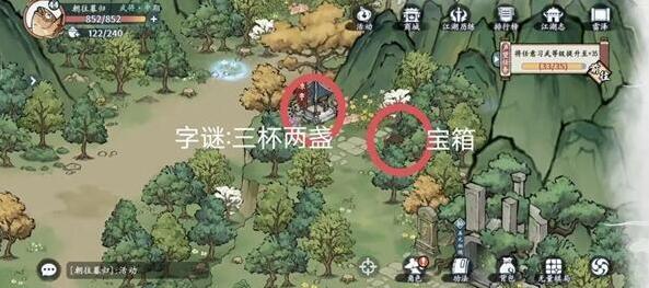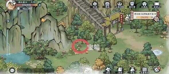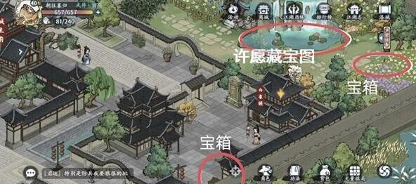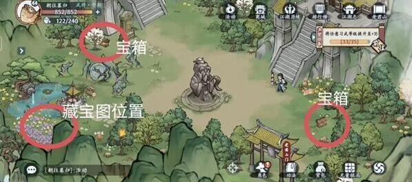 4、寶箱分別在左上中間和右下,藏寶圖在左上,江湖事件在右邊。