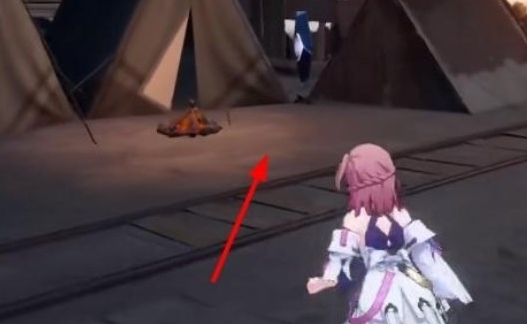 4、第三個尖碑在寶箱下一層,我們在一堆帳篷的中間,可以找到一個物理尖碑,如下圖所示,我們使用物理攻擊繼續(xù)解鎖。