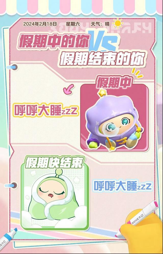 活力四射蛋小黃!勤奮努力蛋小黃!美妙假期進行時他!是奔波在蛋仔島為準備蛋仔春晚而忙碌的年輕蛋楷模!而當假期余額即將告罄……蛋小黃:哈……欠……你說什么?皮蛋:哈……哈欠……說不想起床捏……