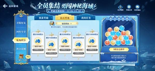每日還可參與積分扭蛋抽獎,獎池內(nèi)含正版庫贊手辦、航海王冰箱貼盲盒以及最高12萬鉆石的超級大獎!通過完成任務(wù)積累積分,即有機(jī)會將這些珍稀獎勵收入囊中。