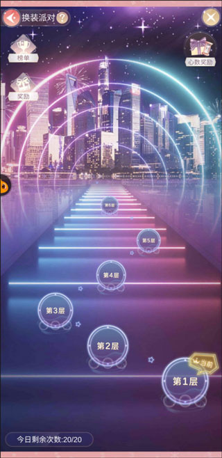4、派對為時裝比拼類型,根據(jù)每個關(guān)卡的要求穿戴相應類型額服飾即可增加分數(shù),分數(shù)超過通關(guān)條件時即可通過,超出分數(shù)越多通關(guān)星級越高,最多3星。