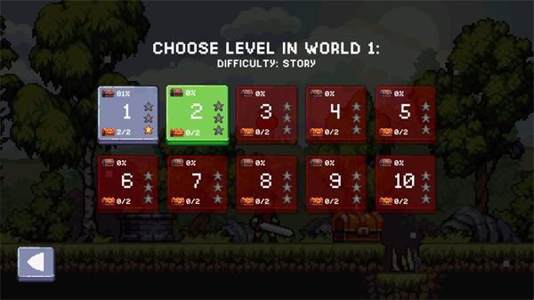 2、點擊綠色按鈕后你可以選擇不同的世界和關卡來游玩。