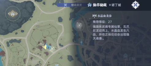 水晶血龍參:位置是在山頂上,不過因為這邊地勢相對比較高,在獲取時有一些難度,要想方便于采集,可以選擇具有飛行能力的武魂角色。