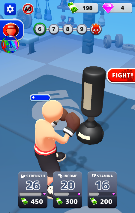 2、當能量足夠時,不斷點擊屏幕,讓角色開始攻擊沙袋,在這個過程中,可以獲得大量鈔票