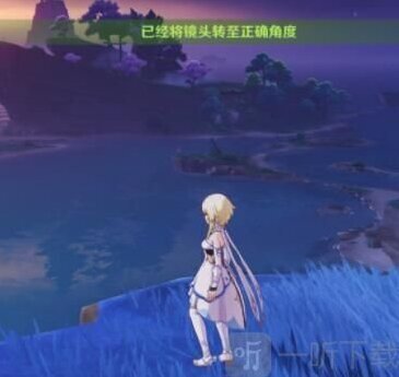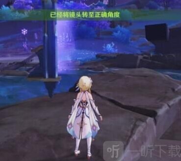 從清籟島七天神像處向西走,來到實(shí)景標(biāo)記圖所標(biāo)記的山崖處,使用拍照功能將視角轉(zhuǎn)向西南方向即可: