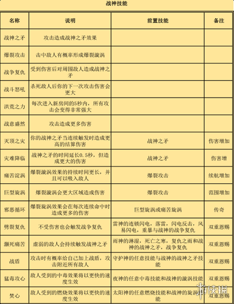 戰(zhàn)神技能包含傷害提升類以及附屬范圍傷害類。