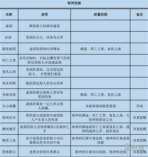 雨神技能是針對(duì)虛弱敵方或抵抗傷害而設(shè)計(jì)的。
