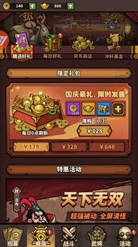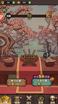 2、進(jìn)入游戲主界面,包括招募、商店、戰(zhàn)斗、武將和活動(dòng)。
