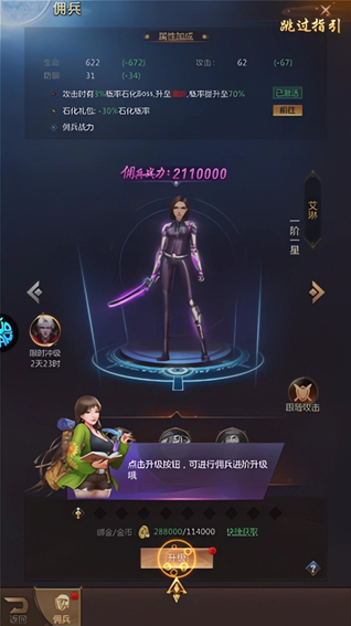 2、傭兵升級是提升戰(zhàn)斗力的途徑之一。