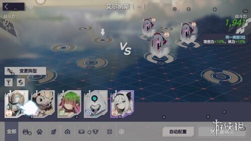 2、點(diǎn)擊配置適合的角色,變換陣型,一鍵即可變換,點(diǎn)擊開始戰(zhàn)斗,命令精靈使用技能。
