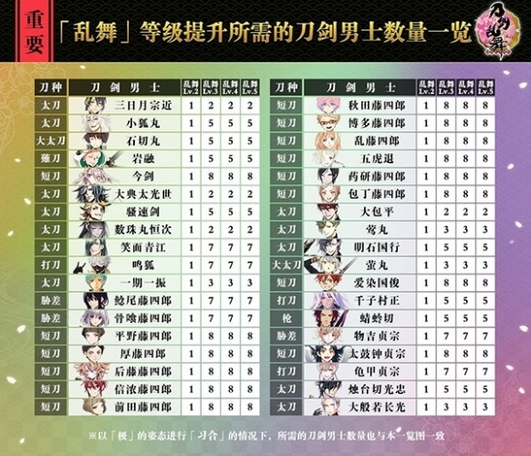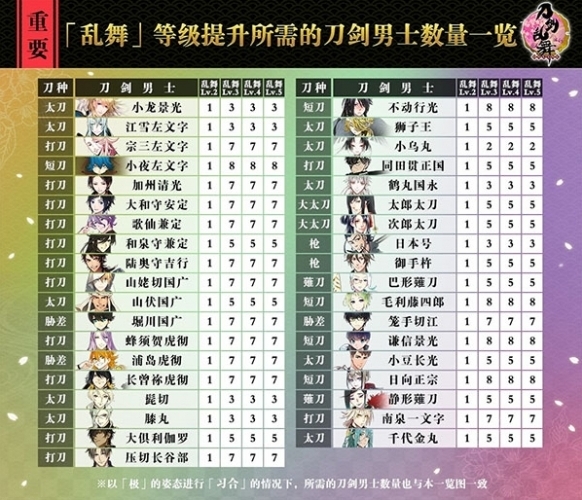 「亂舞」等級提升所需的刀劍男士數(shù)量