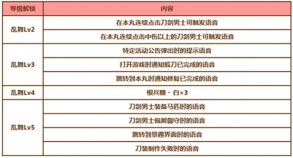 「亂舞」等級提升后,可以觸發(fā)新的語音并了解到刀劍男士新的一面。