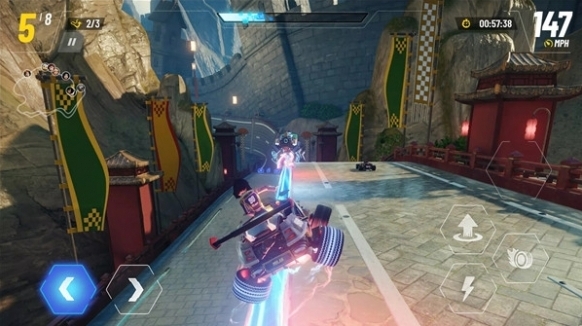 2、游戲畫風(fēng)充滿創(chuàng)意與幻想色彩,每條賽道更隱藏驚喜機(jī)關(guān)與神秘捷徑,增添探索樂趣。